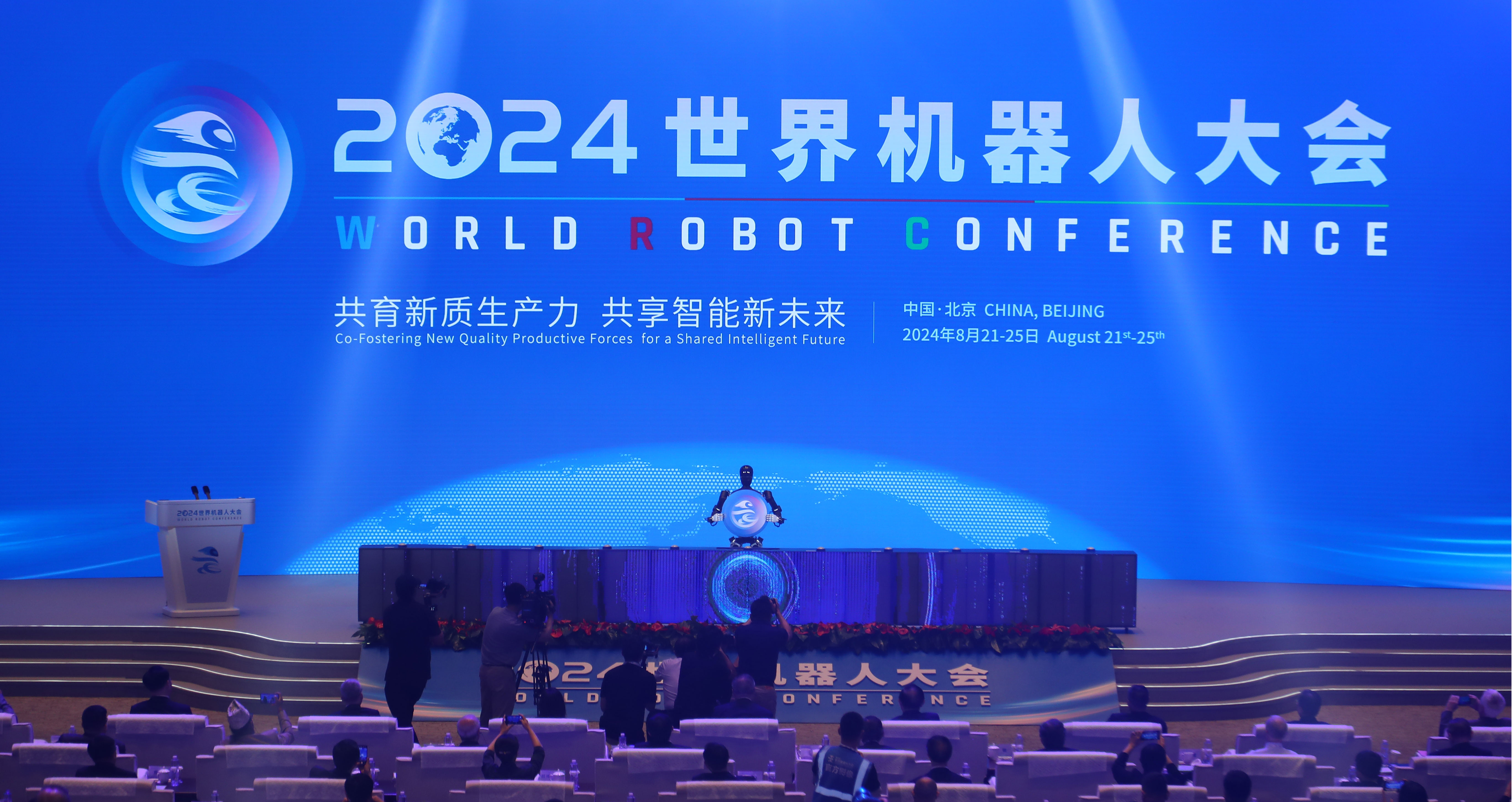 一袭银黑色打扮的机器人,双手环抱着大会徽章,一步步地走向舞台中央,再将其准确地放入启动台上。这是8月21日在北京亦庄举行的2024世界机器人大会开幕式上的一幕。这个身高约173厘米、体重60公斤左右,名叫“天工1.2max”的机器人,由北京具身智能机器人创新中心研发,系首次亮相。它与台上嘉宾,以及数百位与会嘉宾和观众一同见证大会开幕。