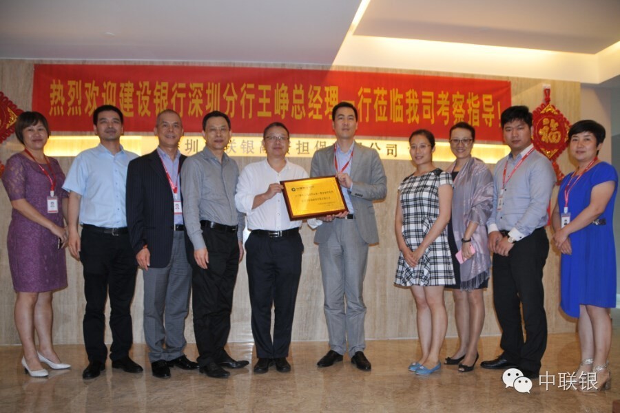 近日,中国建设银行深圳分行王峥总经理一行莅临工总会员单位深圳中联银融资担保有限公司考察指导,并授予“2015年度工程担保业务-黄金合作机构”称号。